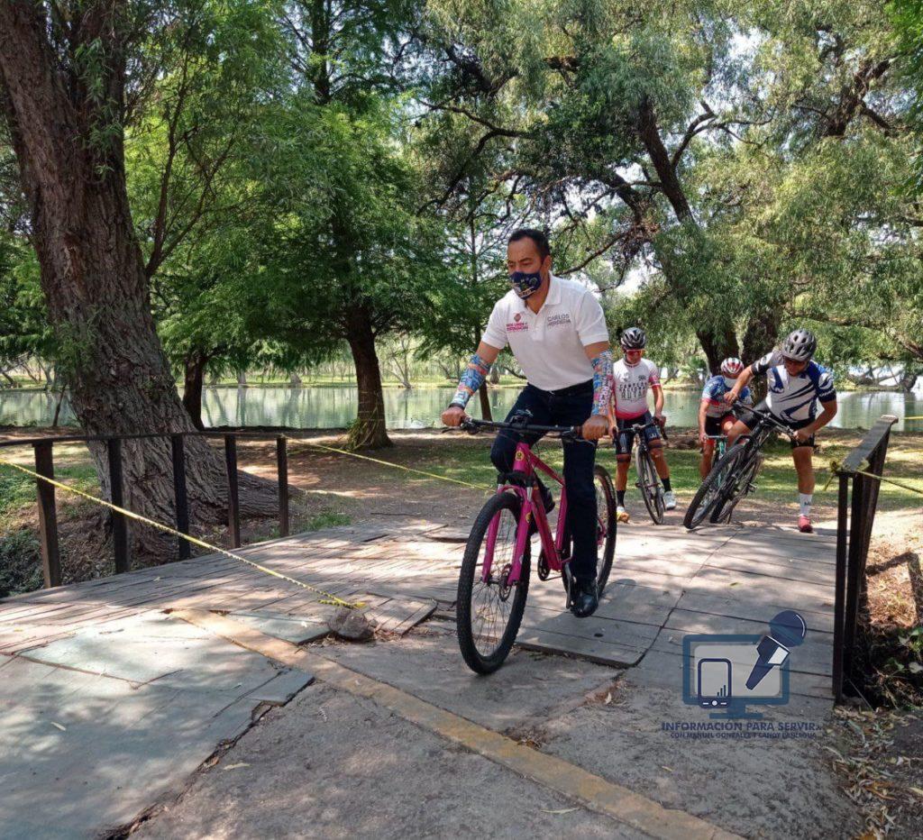 El abanderado del Equipo por Michoacán aprovechó su visita a la Cuna del Imperio Purépecha para realizar una rodada ciclista por las principales zonas ecoturísticas como La Zarcita y La Laguna de Zacapu.