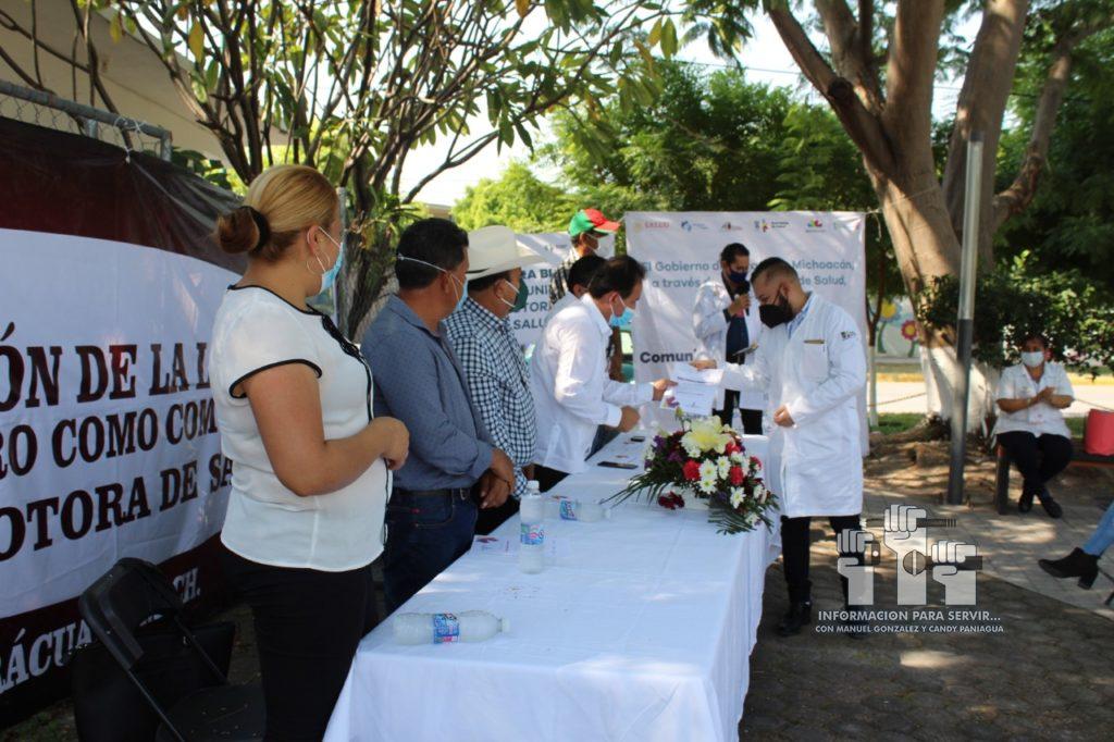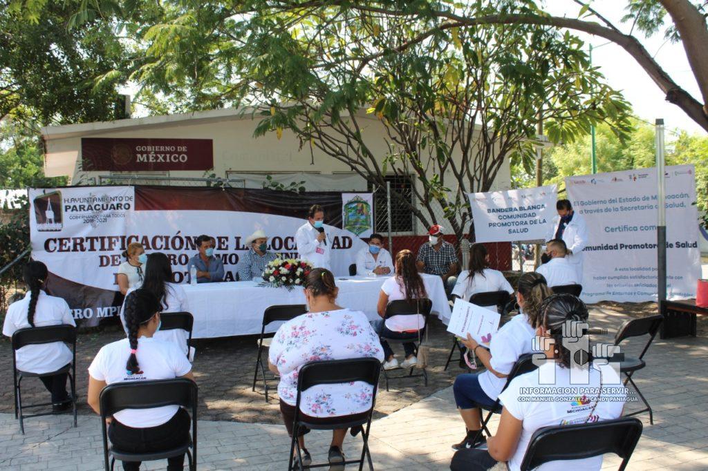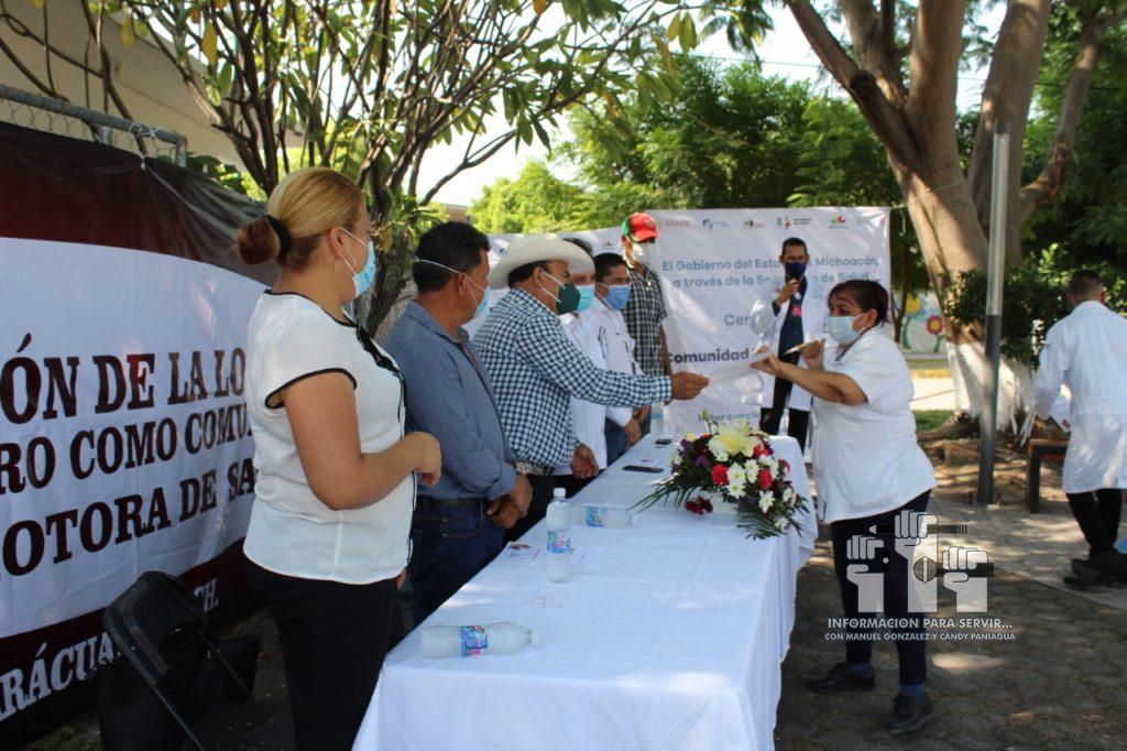 USPERO, MPIO., DE PARACUARO, 27 DE NOVIEMBRE DE 2020.- Luego de haber cumplido los indicadores que establecen, la realización de una serie de acciones enfocadas a la mejora continua de los ambientes, físicos y sociales para empoderar a una población para el manejo adecuado de los determinantes de su salud, este viernes, la Secretaria de Salud a través de la Jurisdicción Sanitaria 07, otorgaron a la Localidad de Uspero del Municipio de Parácuaro, la certificación como una comunidad “Promotora de Salud”.