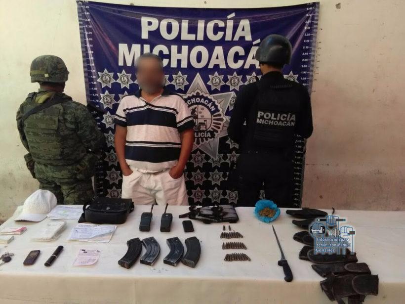 En la calle Hermenegildo Galeana del municipio de Lázaro Cárdenas, se detuvo a Samuel G., con un arma calibre 6.35mm; en otro hecho, pero en la colonia Centro, aseguraron a Germán C., con una camioneta Nissan, con reporte de robo.