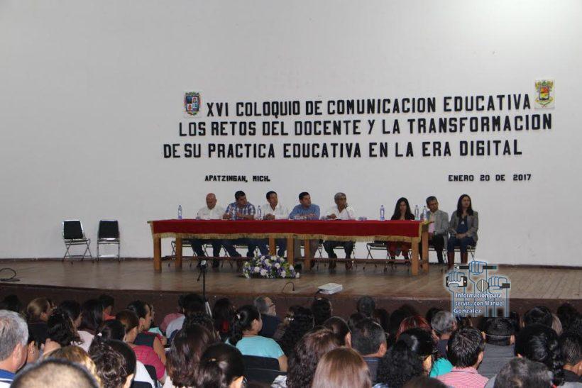 APATZINGÁN, MICH. A 20 DE ENERO DEL 2017.-Con una nutrida participación de docentes se desarrolló el Sexto Coloquio Educativo «Retos Docentes en la Transformación de su Práctica Educativa en la Era Digital”, al dar la bienvenida, el presidente municipal, César Chávez Garibay, destacó la importancia de que el sector educativo se involucre en los nuevos modelos educativos.