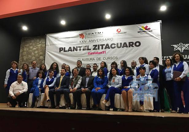 Zitácuaro, Michoacán, a 15 de febrero de 2017.- En el marco del 24 aniversario del plantel Zitácuaro, el director general del Instituto de Capacitación para el Trabajo del Estado de Michoacán (Icatmi), Israel Tentory García, celebró el egreso de capacitandos de diversos cursos y especialidades, así como la permanencia del personal al servicio de la institución.