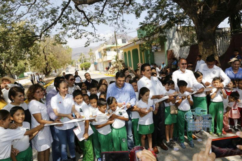 En un segundo punto, Silvano Aureoles inauguró la calle Venustiano Carranza, donde se realizó la construcción de redes de drenaje, agua potable, descargas sanitarias y tomas domiciliarias, y posteriormente la pavimentación con concreto hidráulico de 15 centímetros de espesor en una longitud de 120 metros lineales por un ancho de calzada vehicular de 20 metros; además de camellón central de cinco metros, todo ello con una inversión de un millón 926 mil pesos, obra que beneficiará a alumnos del Instituto Valle de Apatzingán «Dionisio Béjar».