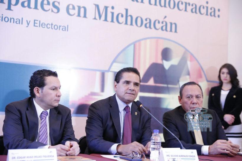 Morelia, Michoacán, a 20 de febrero de 2017.- En México debemos transitar hacia un nuevo régimen para avanzar en una verdadera democracia, con la construcción de un gran frente con coaliciones equilibradas donde haya cabida para todos, así lo destacó el Gobernador Constitucional, Silvano Aureoles Conejo, durante la presentación del libro “La infidelidad ciudadana a la Partidocracia: Elecciones Municipales en Michoacán” de la autoría de Edgar Hugo Rojas Figueroa, director del Instituto de Profesionalización de la Procuraduría General de Justicia del Estado.