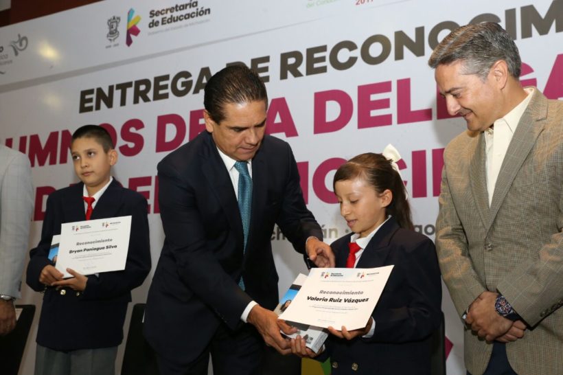 Morelia, Michoacán, a 5 de agosto de 2017.- El Gobernador Constitucional Silvano Aureoles Conejo entregó reconocimientos a los alumnos de la Delegación Estatal de la Olimpiada del Conocimiento Infantil 2017, marco en el que se dio a conocer que gracias al trabajo que el Gobierno del Estado ha realizado en la actual administración, los indicadores en educación básica mejoraron.