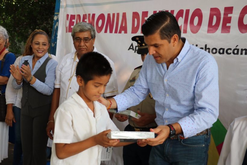 De manera simbólica el alcalde, entrego paquetes de útiles escolares a los niños que cursan de primero a sexto grado, al igual que tablets para los estudiantes de nivel secundaria. Al acto acudió el 30 batallón de Infantería de la 43 Zona Militar.