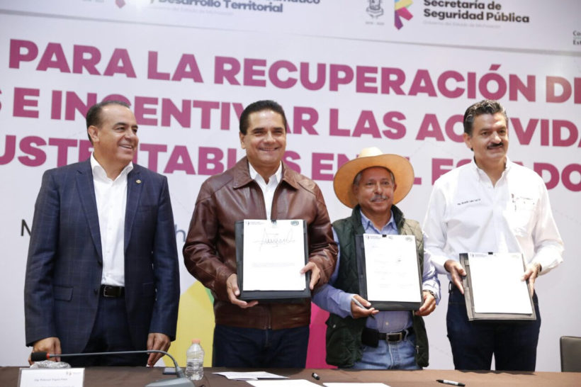 Lo anterior, al presidir la firma de Acuerdo de Concertación para la conservación de los bosques y recursos naturales, así como para incentivar las actividades agropecuarias sustentables en Michoacán con productores de cinco municipios michoacanos, donde destacó su disposición en esta suma de esfuerzos.