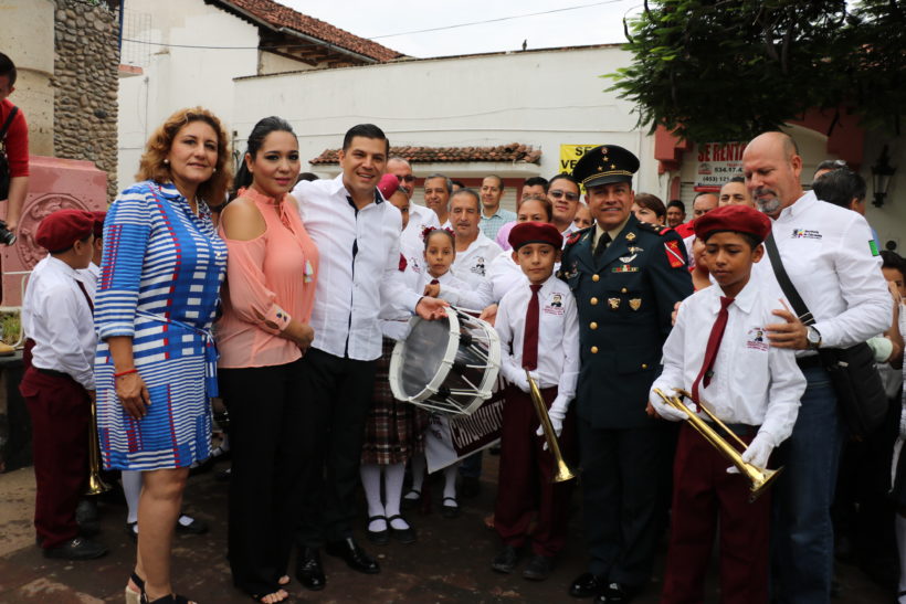Luego de los honores a la bandera, el edil y los integrantes del Cabildo entregaron bandas de guerra a las escuelas primarias Emiliano Zapata; Doctor Miguel Silva de la comunidad de los Hornos; a la primaria Benito Juárez de San Juan de los Plátanos; primaria Vicente Guerrero de la colonia Buenos Aires; Juan de la Barrera de la colonia Niños Héroes; primaria Ignacio Zaragoza de la comunidad de Chiquihuitillo; así como a la primaria Gregorio Torres Quintero, de San Antonio La Labor; escuela primaria 20 de noviembre de la Presa del Rosario y escuela primaria General Lázaro Cárdenas de la colonia Las Palmas.