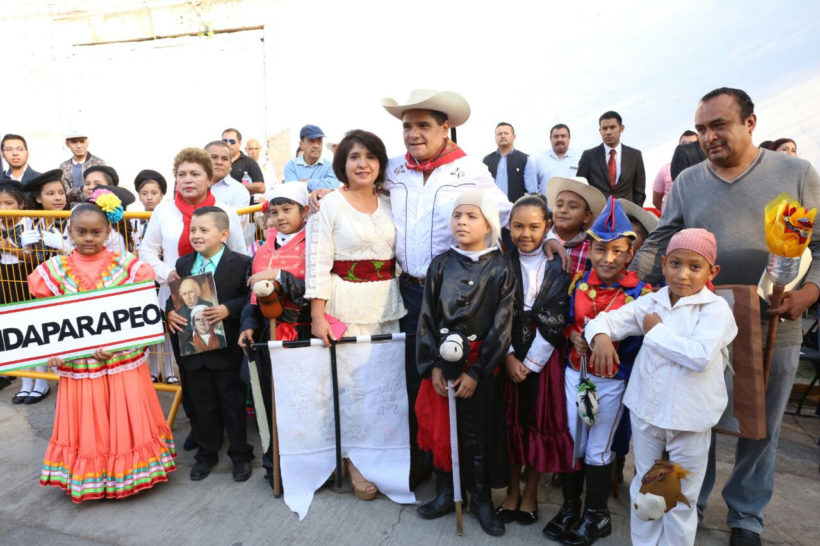Indaparapeo, Michoacán, a 20 de octubre de 2017.- El Gobernador Constitucional Silvano Aureoles Conejo invitó a las michoacanas y michoacanos a seguir luchando de manera unida para construir un mejor Michoacán para todas y todos, ello al encabezar la ceremonia por el CCVII aniversario del nombramiento militar de Don José María Morelos y Pavón y el inicio de la XXIII Cabalgata Morelos en el municipio de Indaparapeo.