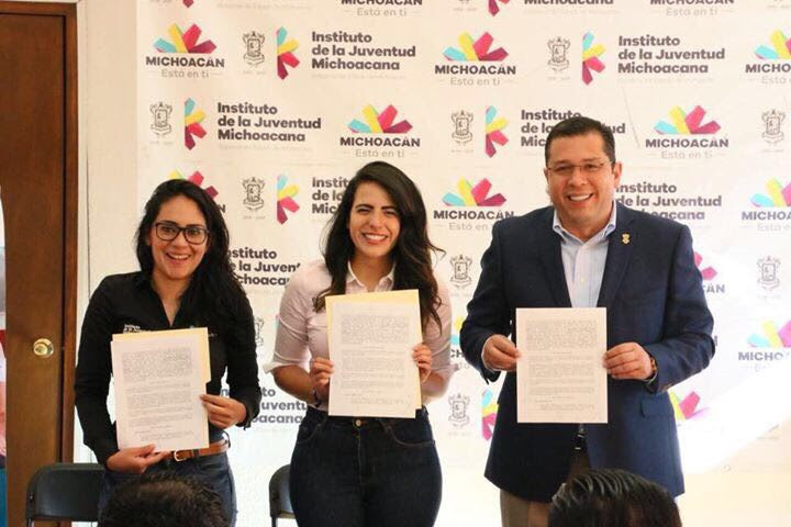 Morelia, Michoacán, a 13 de noviembre del 2017.- Con la finalidad de abrir espacios para la prestación del servicio social de pasantes y contribuir a la formación profesional de quienes realizan dicha labor en beneficio de la comunidad, el Telebachillerato Michoacán y el Instituto de la Juventud Michoacana (Ijumich), signaron un convenio de colaboración.