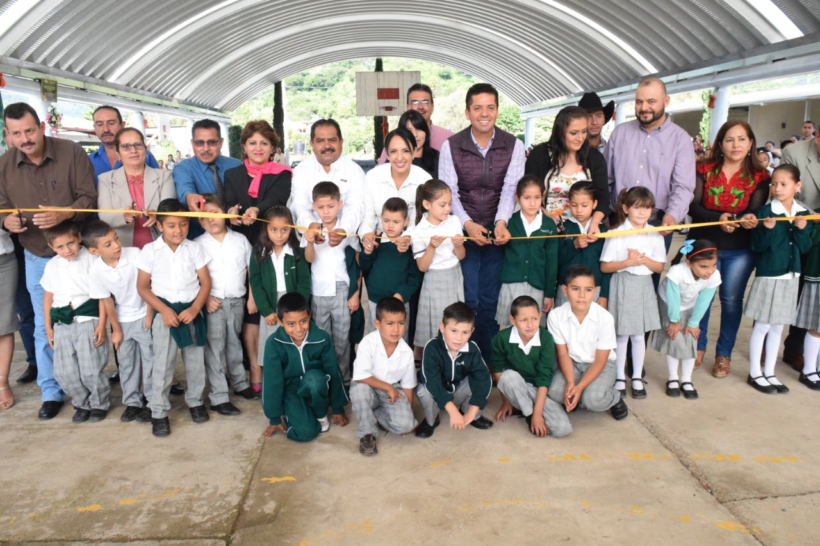 Etúcuaro, mpio. de Madero, Michoacán, a 17 de septiembre de 2018.- Los y las 200 estudiantes de la Escuela Primaria Rural “Benito Juárez” de esta Tenencia, cuentan ya con una techumbre que les permitirá realizar actividades al aire libre sin preocuparse por la lluvia o los rayos del sol, la cual fue inaugurada este lunes.
