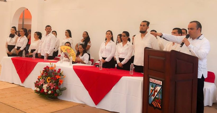 AGUILILLA, MICH.- En solemne sesión protocolaria como enmarcan las leyes, reglamentos y estatutos para las transiciones del poder de los municipios, el alcalde electo para gobernar la municipalidad de Aguililla de Iturbide, Osvaldo Maldonado Zepeda, hizo la jura propia y la toma de protesta oficial ante los gobernados para desempeñarse como el máximo representante, gestor de recursos y beneficios para lograr una estabilidad social, durante el periodo gubernamental 2018-2021.