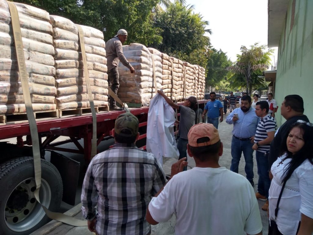 APATZINGAN, MICH., 21 DE ENERO DEL 2019.- A través del convenio signado con la congregación “Mariana Trinitaria” y el Diputado Federal por el Distrito 12 con Cabecera en Apatzingán, Paco Huacus, en lo que va de este mes se han entregado más de 200 toneladas de cemento y mortero así como poco más de medio centenar de tinacos con lo que se ha beneficiado directamente a 285 familias de Apatzingán, Coalcomán y Peribán de Ramos.