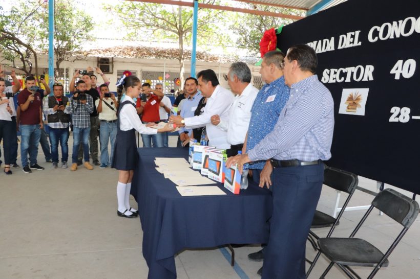 Apatzingán, Mich., a 28 de marzo de 2019.- Como parte del compromiso que tiene la administración municipal, con el sector educativo y con los estudiantes destacados, el alcalde, José Luis Cruz Lucatero, entregó 12 tablets a los alumnos que participaron en la Olimpiada del Conocimiento del sector 40 de educación primaria.