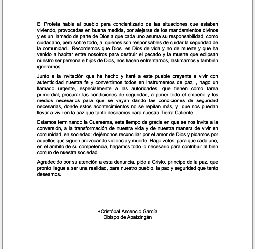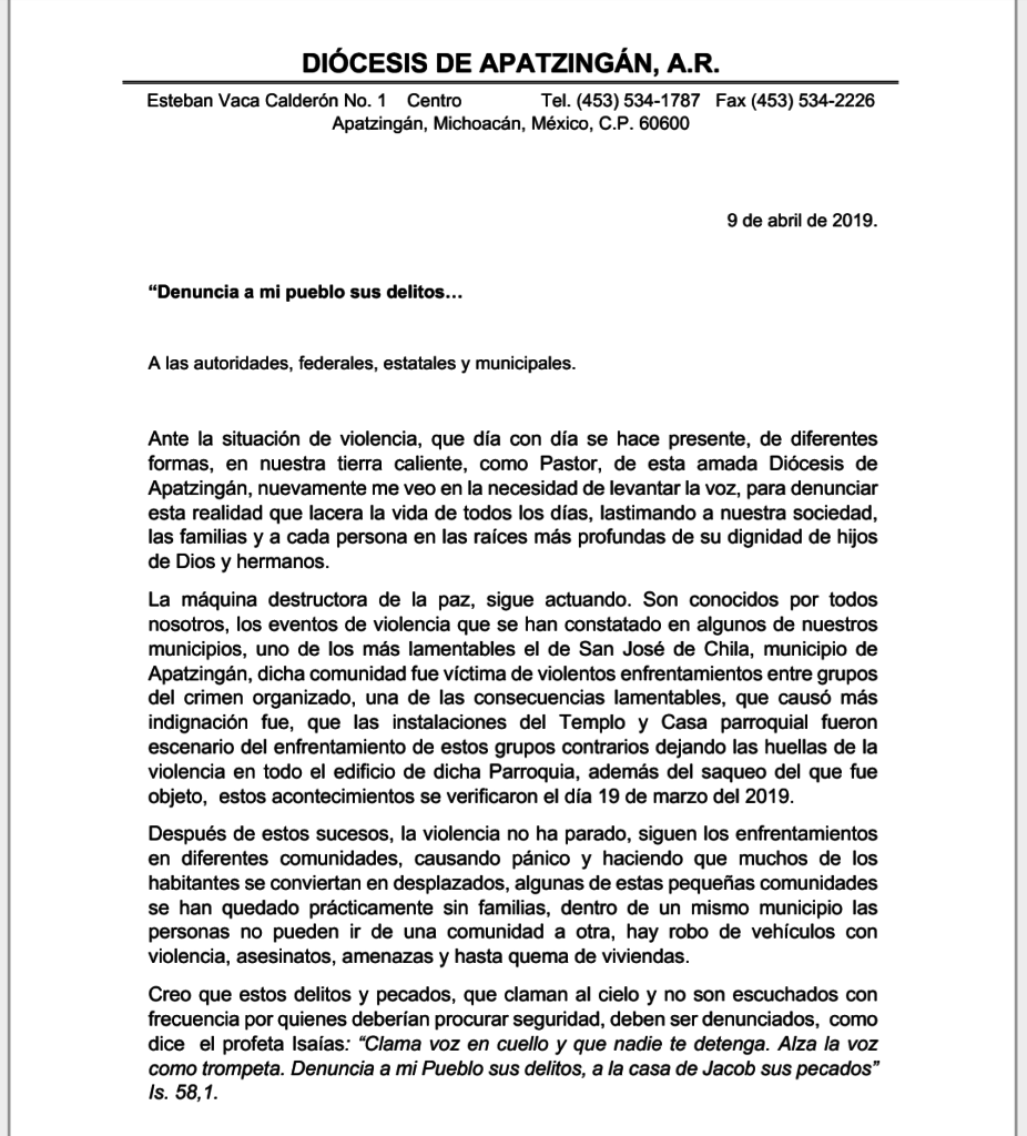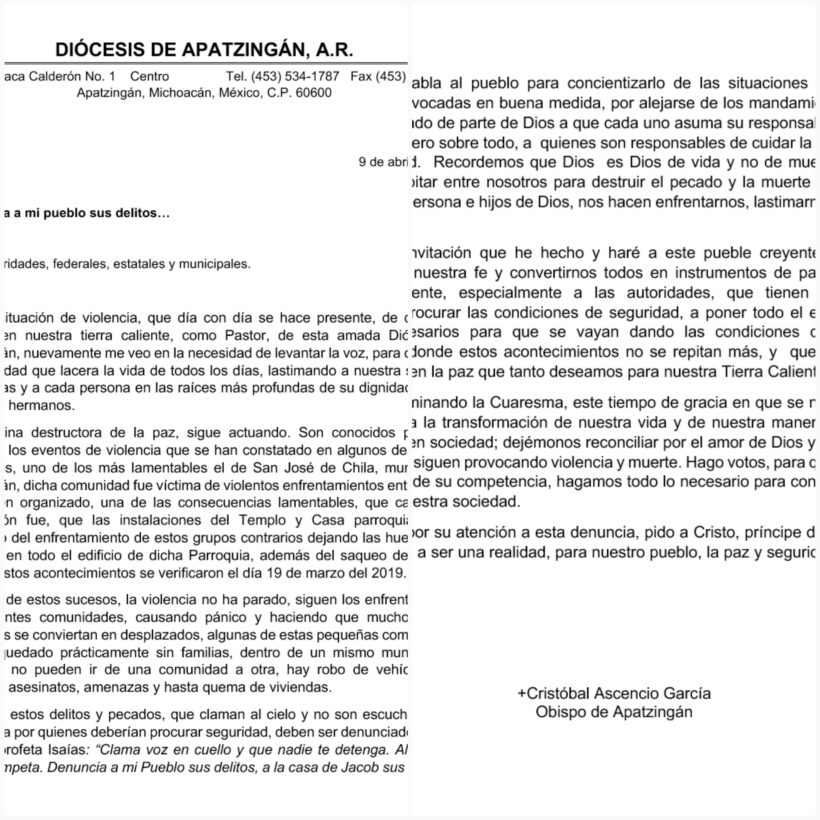 Por lo anterior, y en aras de continuar con una comunicación permanente con los actores políticos, sociales, religiosos y gremiales, el secretario de Gobierno, Carlos Herrera Tello, se reunirá este miércoles con el Obispo de la Diócesis de Apatzingán, Cristóbal Ascencio García.