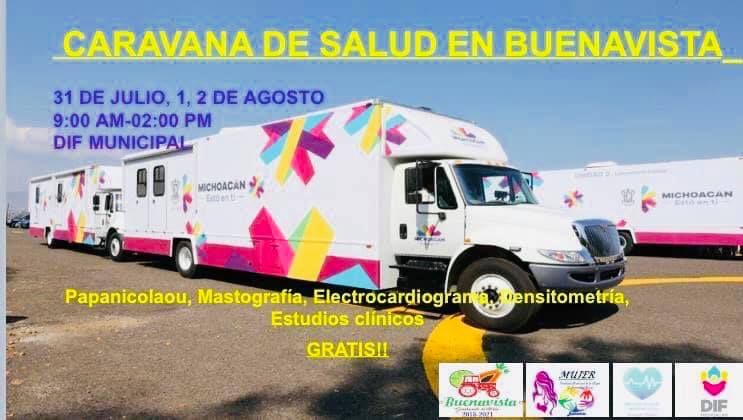 Por otro lado el Edil Zepeda Chávez anuncio, que el 31 de julio, 1 y 2 de agosto, estará en Buenavista la caravana PREVENIMSS, donde se ofertaran servicios de promoción de la salud, asi como mastografías y Papanicolaou para detección oportuna de cáncer de mama y cervical, estudios, entre otros servicios que se ofrecerán a todo el grueso de la población, ello en aras de contribuir al cuidado de la salud, cuya protección es una prioridad para mi gobierno, afirmo para concluir el Munícipe.