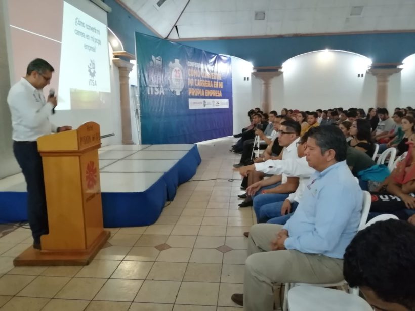 Apatzingán, Mich., a 03 de septiembre de 2019.- Para acercar herramientas de desarrollo profesional a los estudiantes, el Instituto Tecnológico Superior de Apatzingán (ITSA), presentó la conferencia “Cómo convertir mi carrera, en mi propia empresa”, dentro de los festejos del 25 Aniversario de la institución.