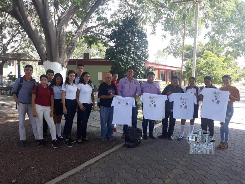 BUENAVISTA, MICH., 17 DE NOVIEMBRE DE 2019.- Alumnos del Plantel COBAEM  plantel Buenavista siguen fortaleciendo el proyecto “Basura Cero” estrategia impulsada por el Alcalde Gordiano Zepeda Chávez, por lo que un grupo de estudiantes reciben de manos del director de Ecología y Medio Ambiente Ramiro Rodríguez, las playeras que los acreditan como integrantes de la Patrulla Ecológica.