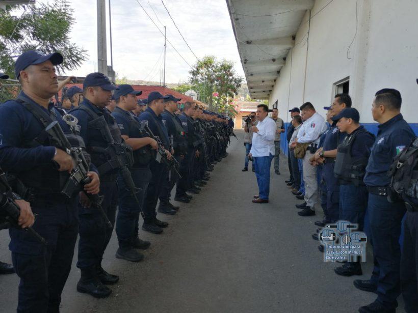 Ante el coordinador de Comisarias de la Secretaría de Seguridad Pública, Francisco Camacho y los elementos de la Policía Municipal, el alcalde señaló que la seguridad es la base para una sociedad fuerte en todos los sentidos, por lo que en lo que va de la administración se ha puesto especial atención en la capacitación de los efectivos y el mejoramiento de sus equipos, para una reacción inmediata.