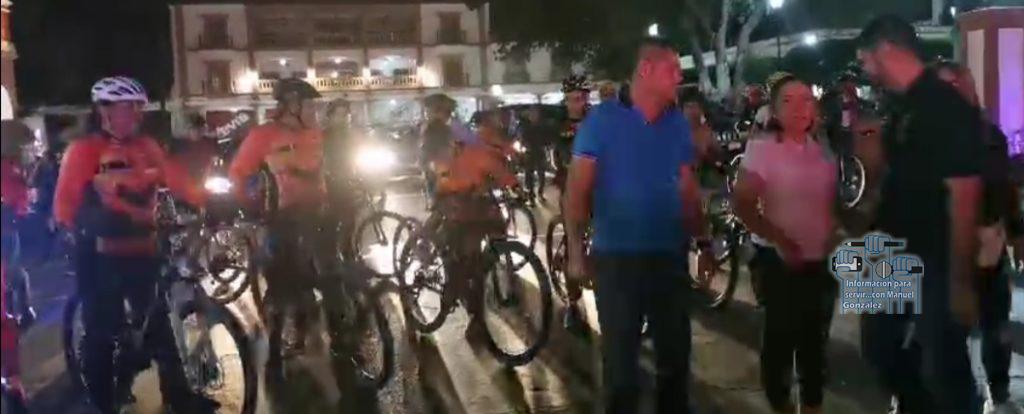 APATZINGAN, MICH., A 01 DE FEBRERO DE 2020. – En punto de las 20:00 horas, un nutrido contingente integrado por ciclistas de Tecomán, Colima así como de Coalcomán y Apatzingán salieron rumbo a la Tenencia de Acahuato ello en lo que se denominó la peregrinación Ciclista 2020 impulsada por el Gobierno Municipal que preside el Alcalde José Luis Cruz Lucatero.