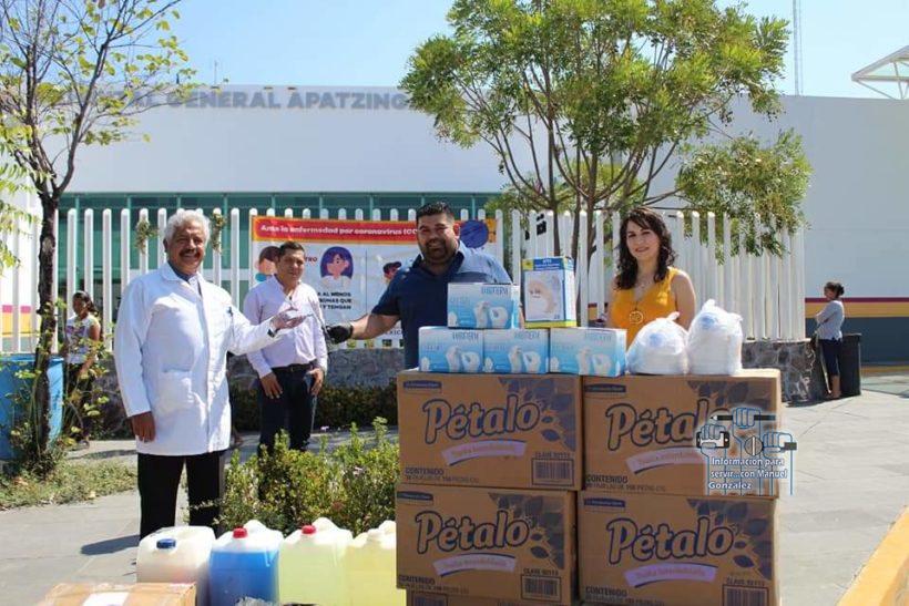 APATZINGAN, MICH., 15 DE ABRIL DE 2020. – El Diputado Federal Paco Huacus Esquivel y la Regidora del PT Blanca Azucena Álvarez Chávez hicieron una importante donación de productos de limpieza y protección al Hospital Regional de Apatzingán, dentro del que se incluye material como caretas para médicos enfermeras y cubrebocas certificados para protección del personal de salud que esta en la primera línea del combate al COVID-19.