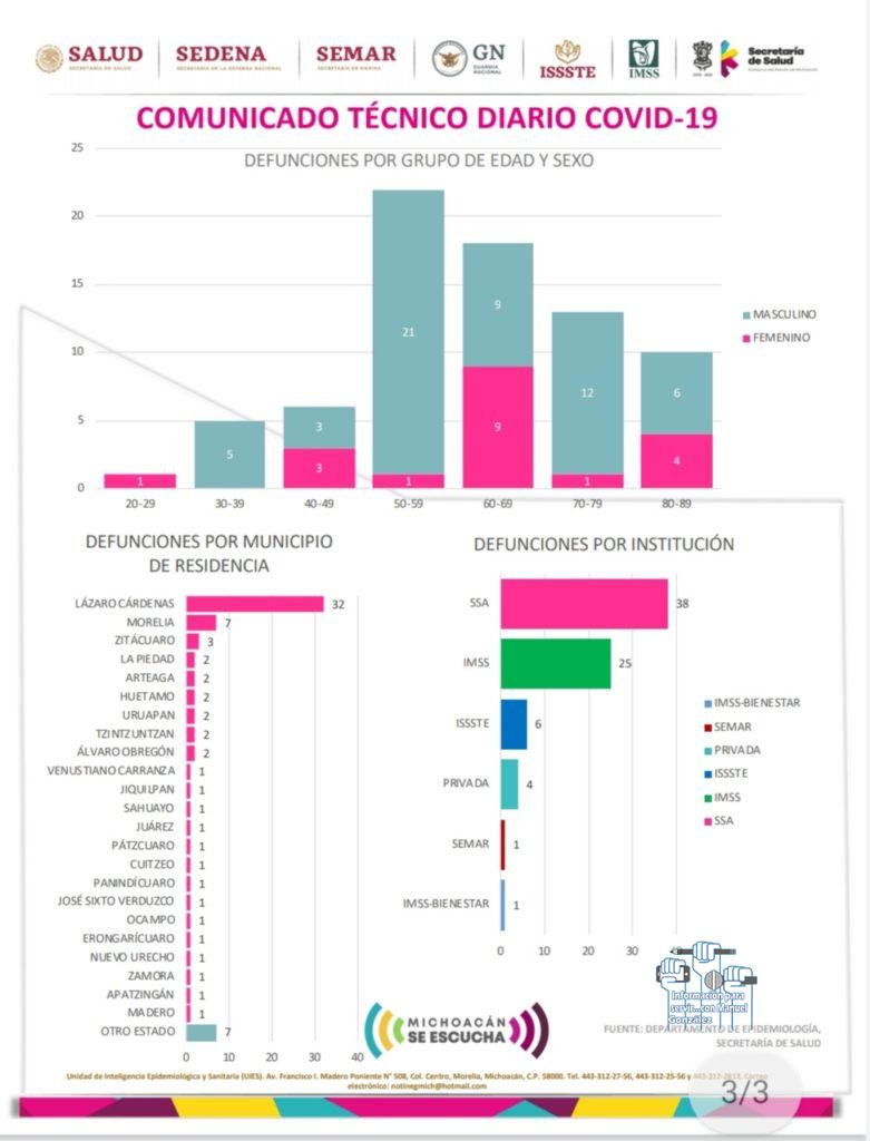 De igual manera a esta fecha se tiene un reporte de 75 defunciones por esta causa en el estado de Michoacán.