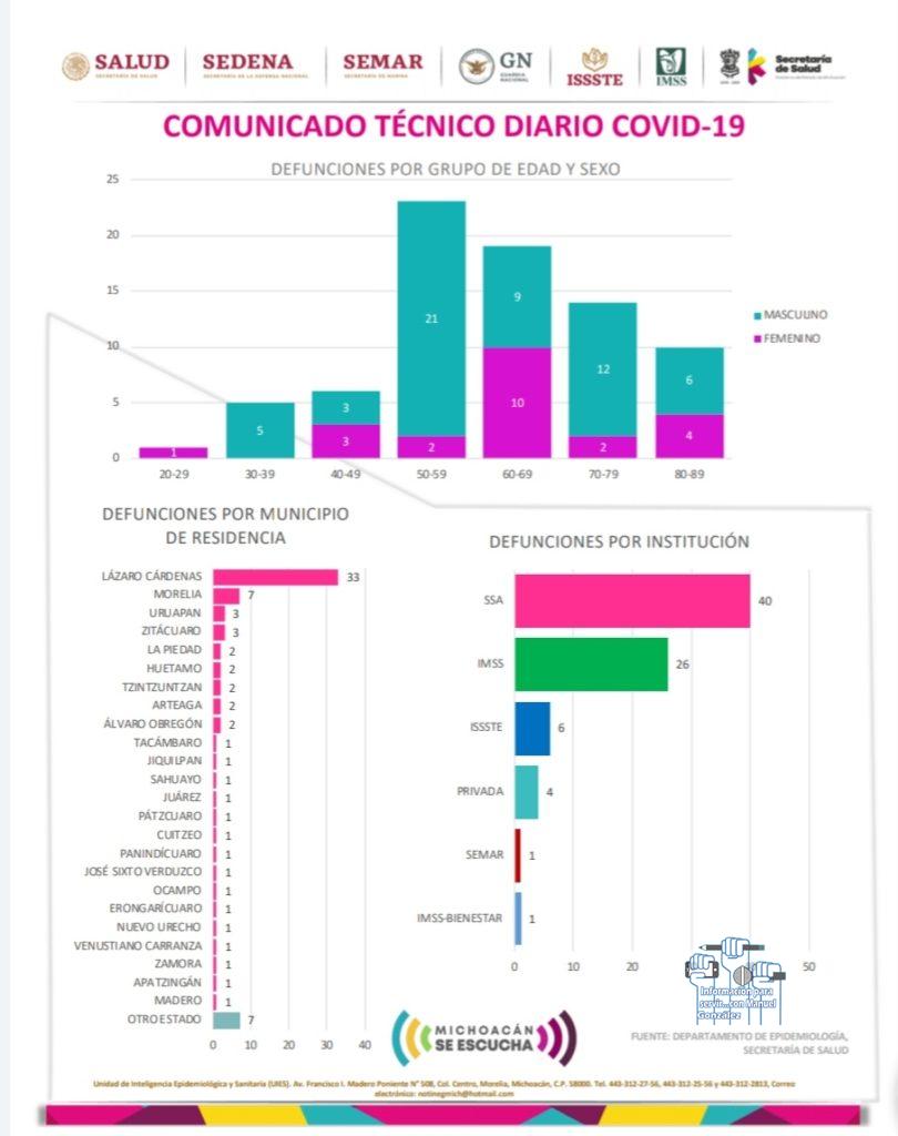 De igual manera a esta fecha se tiene un reporte de 78 defunciones por esta causa en el estado de Michoacán.