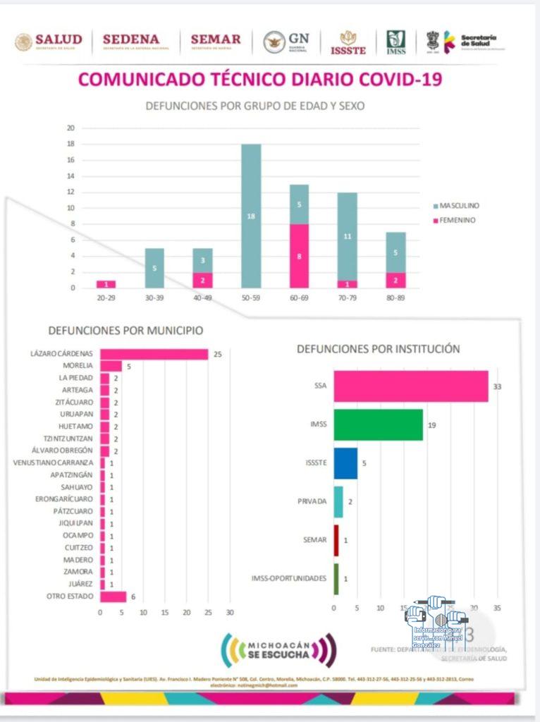 De igual manera a esta fecha se tiene un reporte de 61 defunciones por esta causa en el estado de Michoacán.