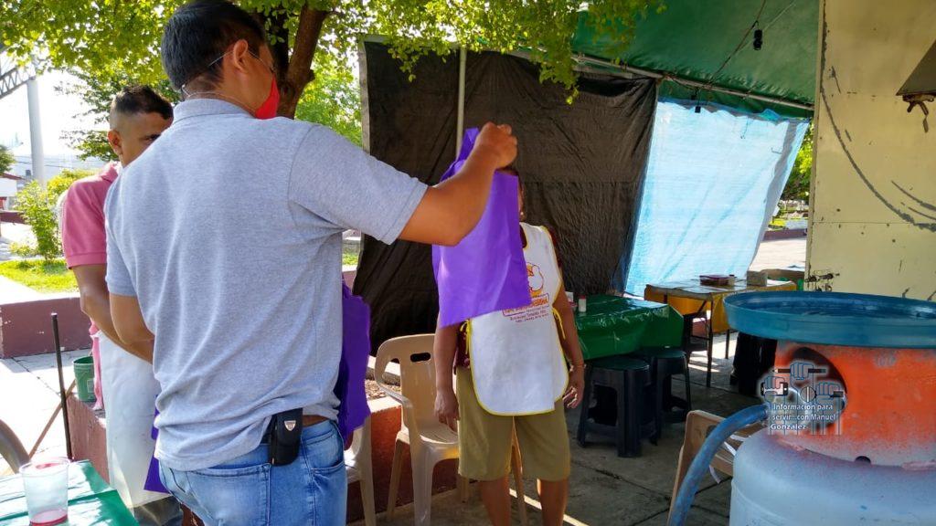 - Este martes se distribuyeron mandiles, cubrebocas y se invitó a los comerciantes a guardar una sana distancia, lavado frecuente de manos y a que atiendan las recomendaciones sanitarias: Dr. Gordiano Zepeda Chávez.