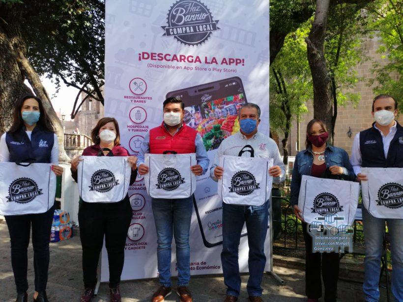 Morelia, Michoacán, 17 de junio de 2020.- Hoy se llevó a efecto, en Morelia, Michoacán, el lanzamiento de la APP , «HAZ BARRIO, COMPRA LOCAL», para reactivar la economía del Municipio de Morelia, por parte de la Secretaría de Fomento Económico Municipal, ante la presencia del Profesor, Raúl Morón Orozco, Presidente, de Morelia, Presidentes Municipales, Diputados Federales, Diputados Locales e iniciativa privada.
