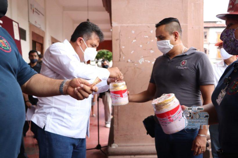 El presidente municipal, José Luis Cruz Lucatero, dio el banderazo de inicio de la colecta, acompañado de funcionarios municipales y de todos los integrantes del Cuerpo de Bomberos de Apatzingán, a quienes deseó éxito en la recaudación de recursos.