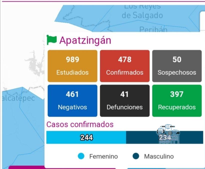 APATZINGAN, MICH., 04 DE AGOSTO DE 2020. – El municipio de Apatzingán, ocupa el quinto lugar a nivel estatal en casos acumulados de Covid-19, al registrar un total de 478 positivos de un total de 989 muestras tomadas del mes de marzo a la fecha.