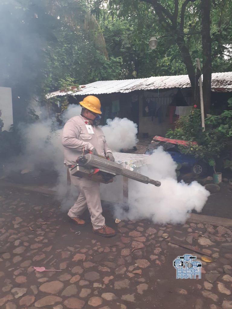 Y la mañana del viernes personal adscrito al departamento de vectores que está a cargo de Juan Antonio Zavala lleva a cabo acciones de control larvario y posterior control químico, para la eliminación del zancudo en su fase larvaria y aérea.