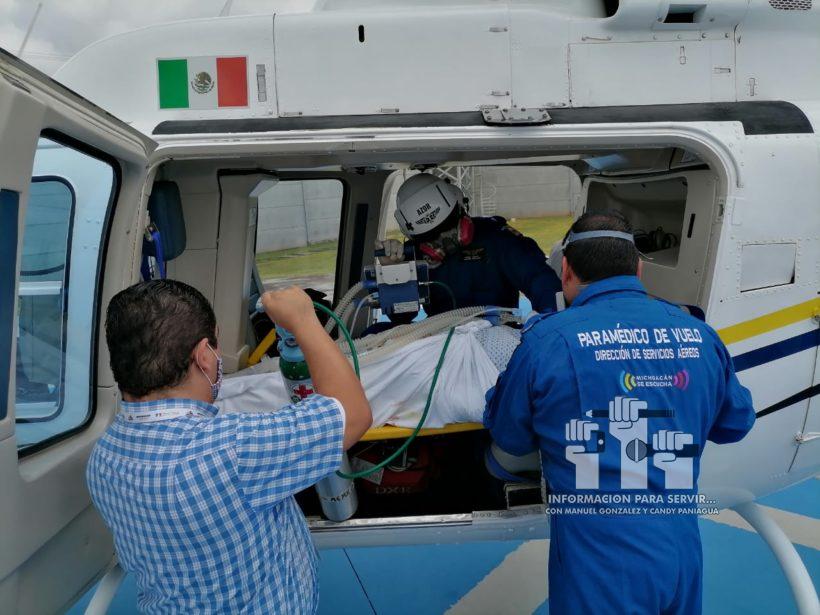 Realiza SSM traslado aéreo de mujer por Código Mater, de Apatzingán a Morelia