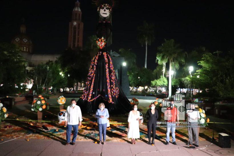En el lugar, el alcalde señaló que aunque por la contingencia sanitaria que se vive debido a la pandemia, no se realizaron eventos masivos por el Día de Muertos y se determinó cerrar el panteón municipal, “decidimos en conjunto con el DIF, instalar esta enorme catrina, con la que celebramos una tradición mexicana: el culto a los difuntos”.