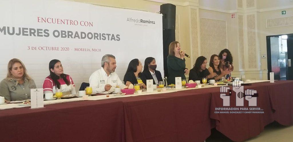 Morelia, Michoacán, 03 de octubre de 2020.- Al encuentro estatal con mujeres obradoristas, convocadas, por el Diputado, Local, Alfredo Ramírez Bedolla, se dieron cita, mujeres, de MORENA, de todo el Estado, Regidoras, Síndicos, Diputadas Federales y Locales, donde virtieron sus experiencias, como políticas obradoristas y del partido morena. Las mujeres asistentes, refrendaron su compromiso con el Presidente de la República, Andres Manuel López Obrador y de coadyuvar para que la 4T sea una realidad nacional.