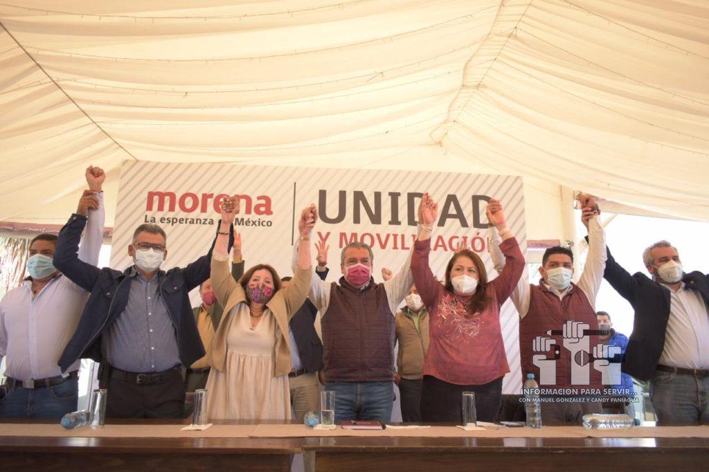 Morelia, Michoacán, 5 de enero de 2021.- «Iniciamos juntos ésta carrera política y el triunfo en la encuesta de MORENA, del Profesor, Raúl Morón, es el reflejo de un trabajo, encaminado a lograr la transformación de México y el Estado, abanderando las causas de los profesores, de los obreros, del pueblo en general, el pueblo decidió que fuera él y el pueblo manda, ratifico mi apoyo total, al Profesor, Raúl Morón Orozco».