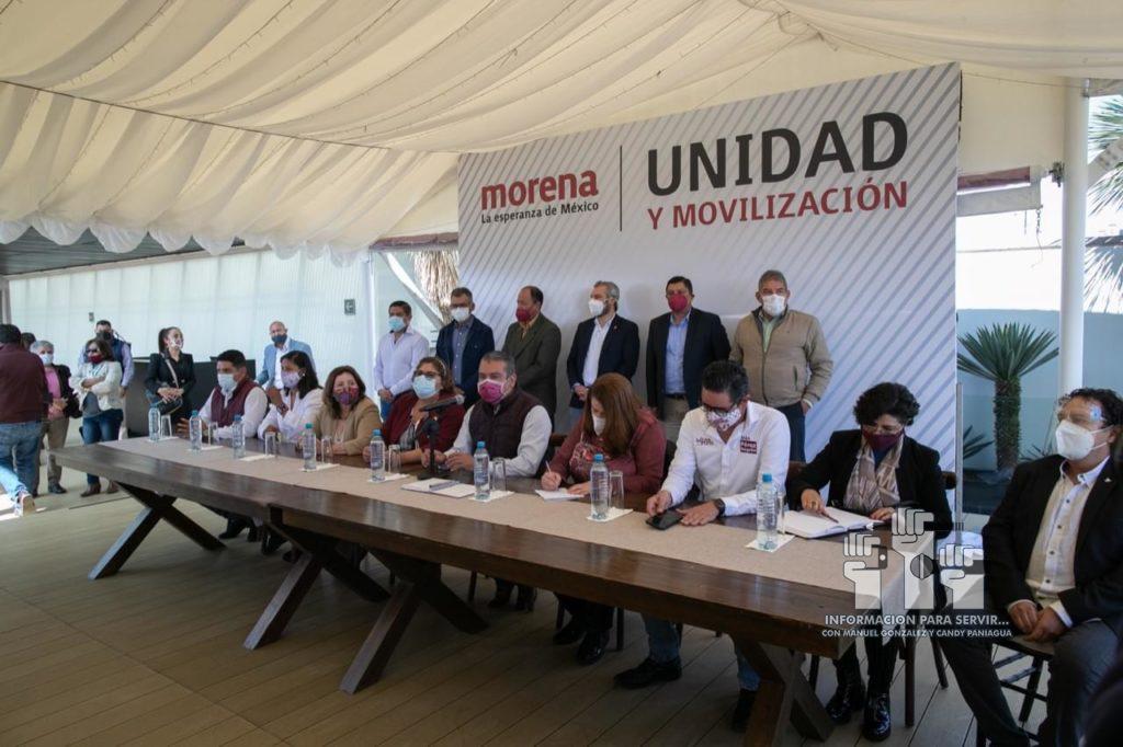 En la rueda de prensa, el Coordinador Estatal, hizo un llamado a la unidad, a los 27 registrados y a sus equipos, para que se sumen al proyecto de la 4T, privilegiando el interés, del pueblo de Michoacán, así mismo declaró que el próximo viernes, el Presidente de la República, realizará una gira oficial en el Estado, visitando Morelia, Zamora y Cotija, donde informará sobre los programas de Bienestar e inaugurará, Cuarteles de la Guardia Nacional, respectivamente.