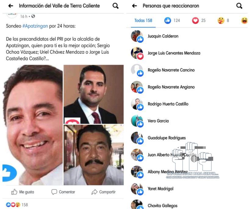 Las encuestas rápidas en redes sociales midieron a Sergio Ochoa Vázquez, Uriel Chávez y Jorge Castañeda, los tres precandidatos del PRI a la presidencia, resultando ganador el ex Diputado Local, Sergio Ochoa, quién en su trayectoria política ha destacado su responsabilidad, honradez y trabajo social a favor a los ciudadanos.