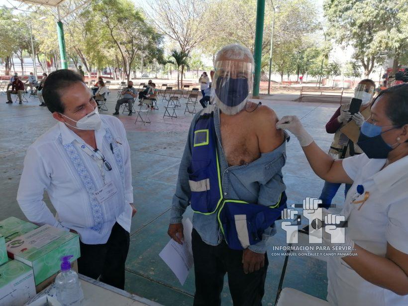 Interrogado respecto a la organización de las tareas de vacunación comentó que esta la Secretaría del Bienestar y la brigada de vacunadores que están a cargo de aplicar la vacuna contra el COVID-19 a los adultos mayores que hayan registrado en Internet o que lleguen de manera simultánea al lugar donde está ubicado el módulo, pues el acuerdo fue que todos reciban el beneficio de la vacuna contra el COVID-19, la cual es de Astra Zeneca y constará de dos dosis con con un intervalo de 21 días entre la primera y la segunda aplicación.