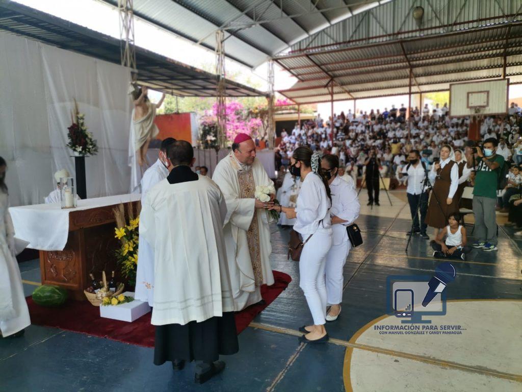 AGUILILLA, MICHOACAN., 23 DE ABRIL DE 2021.- Durante la celebración eucarística por la paz y la seguridad, que oficio el Nuncio Apostólico Franco Coppola en el templo parroquial de Aguililla, en su mensaje Monseñor dijo que “los nombres de las víctimas de la violencia que hemos perdido físicamente a causa de la violencia, están grabados en el corazón de Nuestro Señor” y es por ellos que hoy vamos a ofrecer este sacrificio dijo el representante de Su Santidad el Papa Francisco en México.