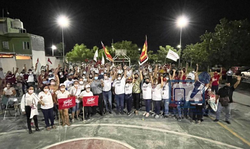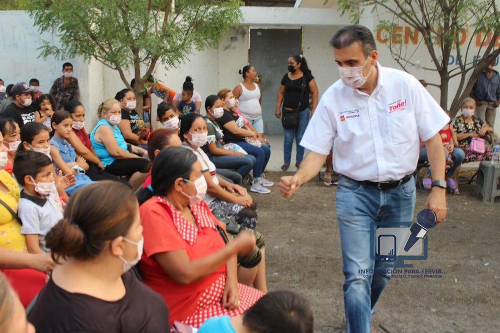 Acompañado por el candidato de la coalición Morena_PT_PVEM a la Diputación Federal por el Distrito 12, Paco Huacus Esquivel, Toño pidió a los ciudadanos del Bugambilias su voto, para concretar la 4 Transformación en el Distrito 23, el Estado de Michoacán y del país.