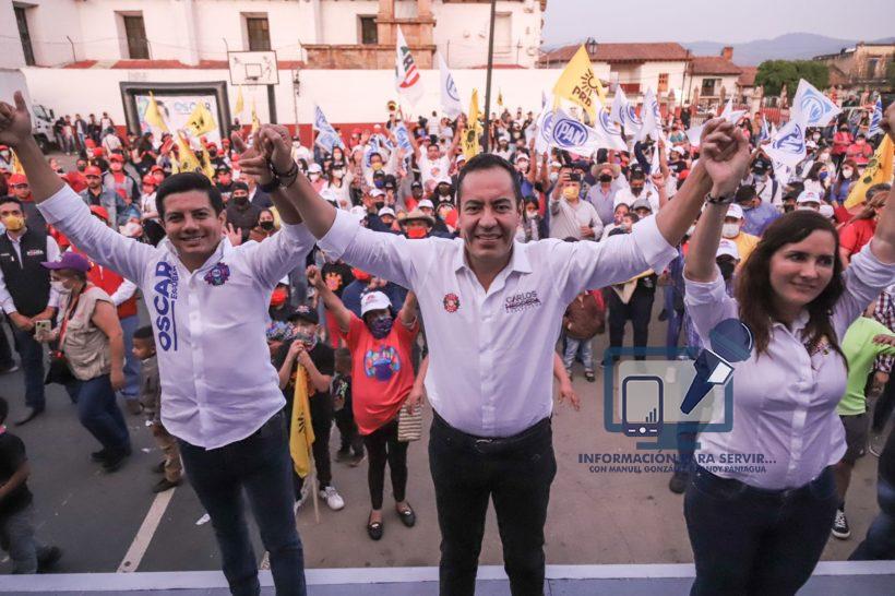 Al acto se dieron cita la candidata a diputada federal por el Distrito 11, Macarena Chávez Flores; Óscar Escobar Ledesma, candidato a diputado local por el distrito 19, así como dirigencias y simpatizantes del PRI, el PAN y el PRD en Acuitzio.