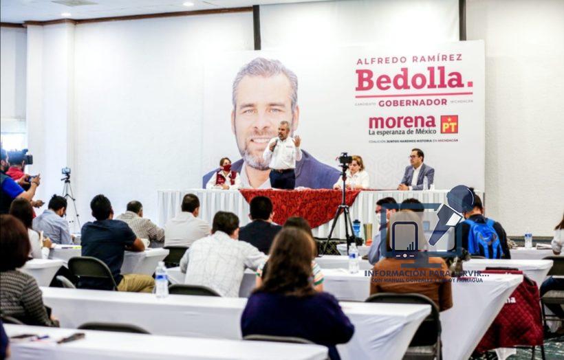 Morelia, Michoacán, 27 de mayo de 2021.- “Es fundamental la participación de actores de distintos ámbitos y sectores de la sociedad civil para la construcción de una visión y una estrategia enfocada en la cultura de la paz, y evitar errores garrafales que se han cometido en el pasado, porque una de las principales preocupaciones en Michoacán es la inseguridad, afirmó el candidato a la gubernatura Alfredo Ramírez Bedolla.