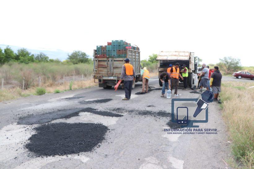 También se trabaja en el bacheo del camino que va de la localidad de Presa del Rosario a Loma de Los Hoyos y del que conduce a la comunidad de Hacienda de la Huerta.