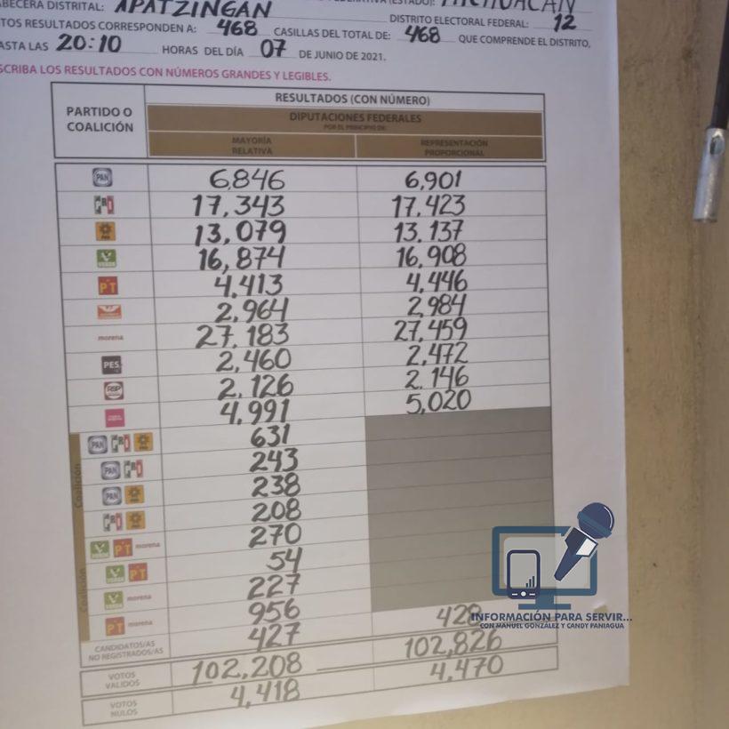 Al concluir la sesión permanente iniciada el 6 de junio a las 8 de la mañana, misma que finalizó después de las 7 de la noche del 7 de junio, el 12 Consejo encabezado por Juan José Becerra Pineda, concluyó colocando en el acceso principal de la sede del órgano electoral los resultados Preliminares de esta contienda que favorecieron a Paco Huacus, quien contenido por la coalición PT-Morena-PVEM.