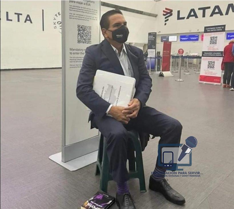 Cd. de México 23 de Julio del año 2021. – Al Gobernador de Michoacán, Silvano Aureoles Conejo, se le vio sentado con sus -Documentos en mano y en el piso un libro de Luís Spota- en su ya clásico » banquito verde» «Banquillo mediático de humildad» en las inmediaciones del aeropuerto, esperando su turno para tomar el vuelo y seguir denunciando ahora a nivel internacional la narco elección, ello como parte de la campaña de «Honestidad y defensa de las familias Michoacanas y Mexicanas».