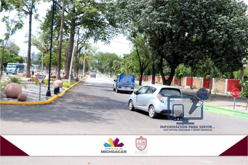 Informó que en las próximas semanas será inaugurada la obra en presencia del presidente municipal, José Luis Cruz Lucatero y del gobernador del estado, Silvano Aureoles Conejo, quienes también entregarán el teatro “Constitución de Apatzingán” ubicado sobre la misma avenida.