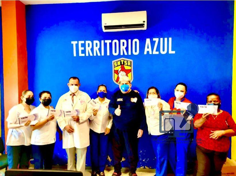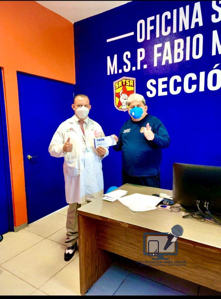 El Dr. Esteban Padilla Infante, entregó los vales de despensa a los trabajadores del SNTSA Sección 21 de Múgica, en la oficina sindical «MSP Fabio Meza Alfaro», ubicada dentro del Hospital de Nueva Italia.