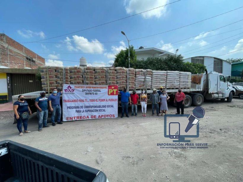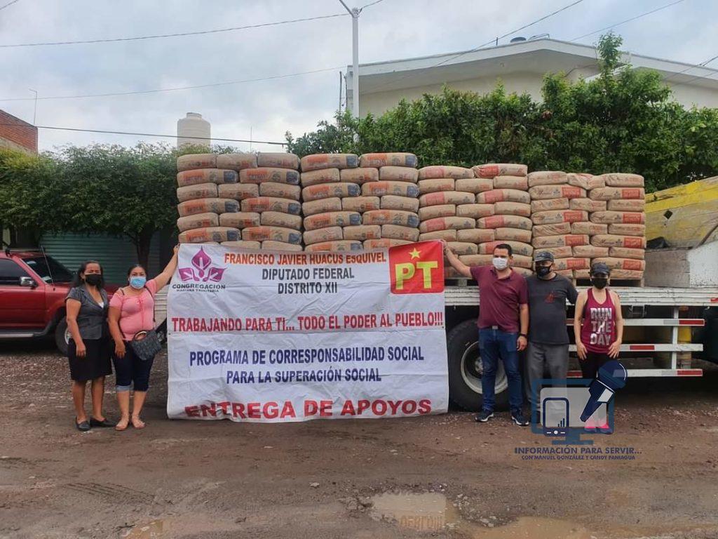 APATZINGÁN, MICH., 14 DE AGOSTO DE 2021. – Durante los últimos casi tres años, la regidora del PT, Blanca Azucena Álvarez Chávez a entregado a familia del municipio de Apatzingán, 12 mil toneladas de cemento y mortero y 5 mil tinacos, con lo que ha contribuido a combatir el rezago en materia de vivienda ello a través del convenio signado por el Diputado Federal, Paco Huacus Esquivel con la Congregación «Mariana Trinitaria».