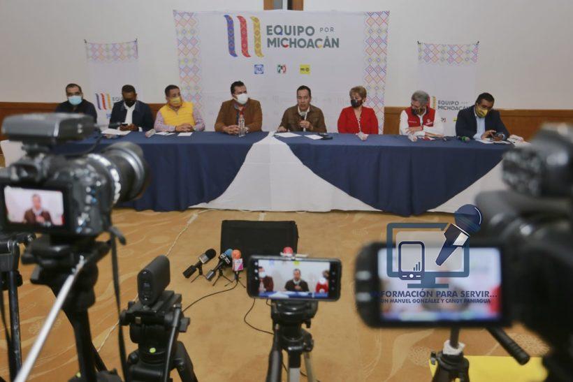 Morelia, Michoacán, a 20 de agosto de 2021.- El área jurídica del Equipo por Michoacán desmintió la afirmación de Morena, la cual asegura que la Sala Superior del Tribunal Electoral del Poder Judicial de la Federación (TEPJF) tomaría en consideración sumar a la votación total del partido marrón las casillas de ocho distritos que fueron anuladas este día derivado de la resolución de los Juicios de Revisión Constitucional.